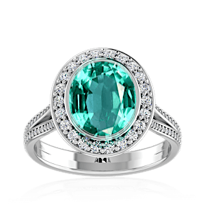 1.34ct Zambian Emerald set in Luxury Halo Crown Diamond Ring