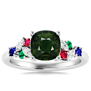 4.54ct Chrome Tourmaline set in Modern Tri Color Gems & Diamond Ring