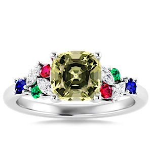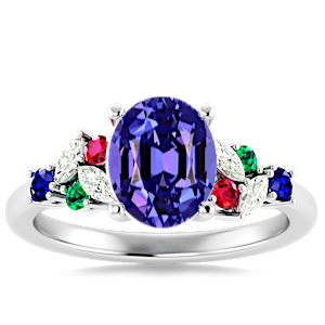 2.73ct Blue Sapphire set in Modern Tri Color Gems & Diamond Ring