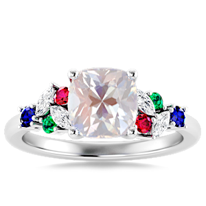 2.67ct Rainbow Moonstone set in Modern Tri Color Gems & Diamond Ring