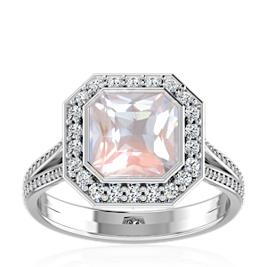 3.17ct Rainbow Moonstone set in Luxury Halo Crown Diamond Ring