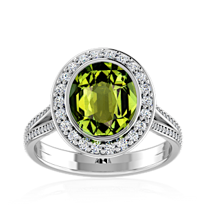 3.08ct Green Tourmaline set in Luxury Halo Crown Diamond Ring