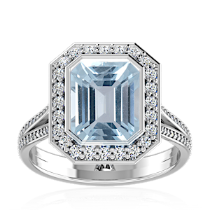 3.55ct Aquamarine set in Minimal Solitaire Natural Diamond Ring
