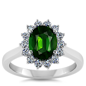 1.26ct Chrome Tourmaline set in Vintage Halo Natural Diamond Ring
