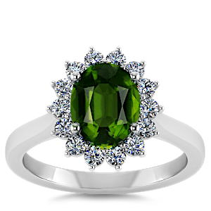 1.52ct Chrome Tourmaline set in Vintage Halo Natural Diamond Ring