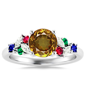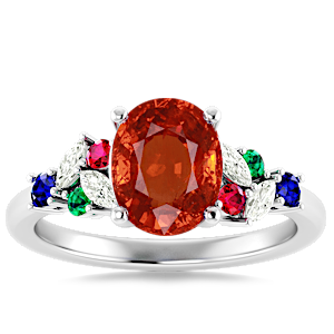 3.49ct Spessartite set in Modern Tri Color Gems & Diamond Ring