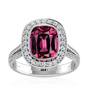 5.00ct Rhodolite set in Minimal Solitaire Natural Diamond Ring