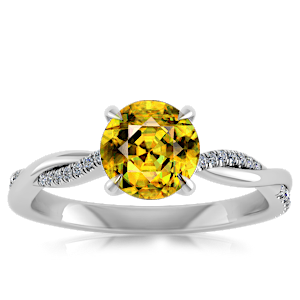 3.27ct Sphene set in Minimal Entangled Natural Diamond Ring