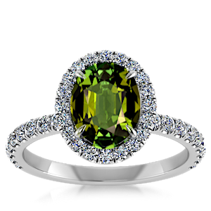 3.05ct Green Tourmaline set in Luxe Halo Natural Diamond Ring