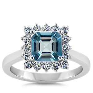 1.84ct Aquamarine set in Vintage Halo Natural Diamond Ring