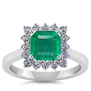1.61ct Zambian Emerald set in Luxury Halo Crown Diamond Ring