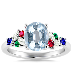 3.24ct Aquamarine set in Modern Tri Color Gems & Diamond Ring