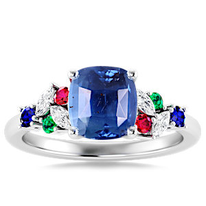 2.00ct Blue Sapphire set in Modern Tri Color Gems & Diamond Ring