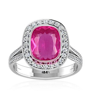 1.77ct Rubellite Tourmaline set in Luxury Halo Crown Diamond Ring