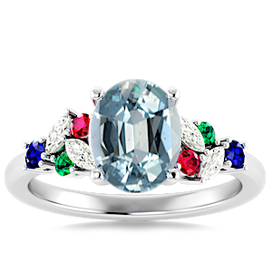2.36ct Aquamarine set in Modern Tri Color Gems & Diamond Ring