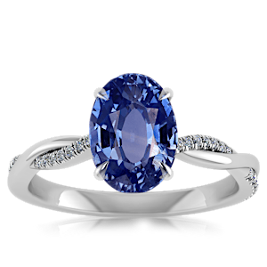 2.30ct Blue Sapphire set in Minimal Entangled Natural Diamond Ring
