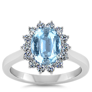 1.00ct Aquamarine set in Minimal Solitaire Natural Diamond Ring