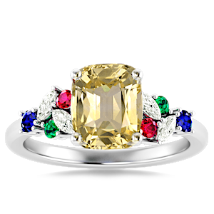 5.58ct Yellow Sapphire set in Modern Tri Color Gems & Diamond Ring