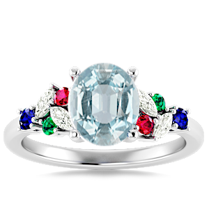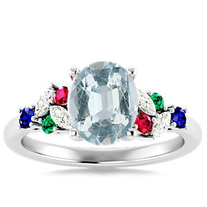 4.56ct Aquamarine set in Modern Tri Color Gems & Diamond Ring