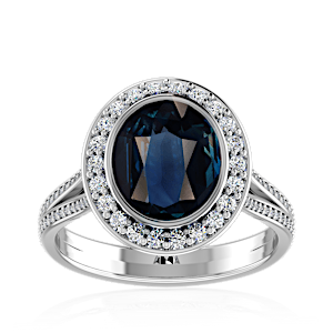 2.71ct Blue Sapphire set in Luxury Halo Crown Diamond Ring