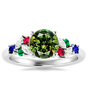 5.36ct Demantoid Garnet set in Modern Tri Color Gems & Diamond Ring