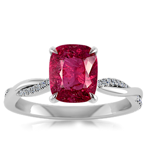 2.50ct Rubellite Tourmaline set in Minimal Entangled Natural Diamond Ring