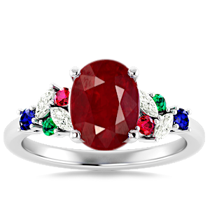 4.16ct Mozambique Ruby set in Modern Tri Color Gems & Diamond Ring