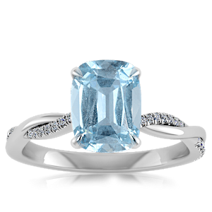 2.74ct Aquamarine set in Minimal Entangled Natural Diamond Ring