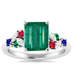 4.71ct Zambian Emerald set in Modern Tri Color Gems & Diamond Ring