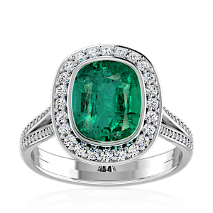 3.13ct Zambian Emerald set in Vintage Halo Natural Diamond Ring