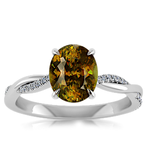 6.70ct Sphene set in Minimal Entangled Natural Diamond Ring