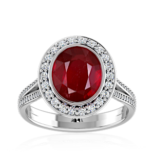 3.00ct Mozambique Ruby set in Luxury Halo Crown Diamond Ring