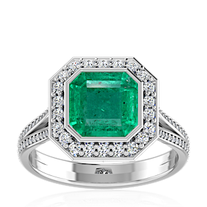 1.92ct Zambian Emerald set in Luxury Halo Crown Diamond Ring
