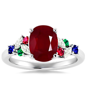 4.02ct Mozambique Ruby set in Modern Tri Color Gems & Diamond Ring