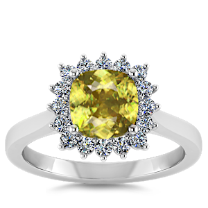 6.41ct Yellow Tourmaline set in Luxury Halo Crown Diamond Ring