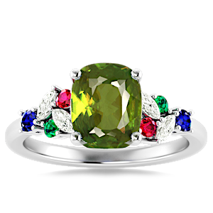 5.36ct Demantoid Garnet set in Modern Tri Color Gems & Diamond Ring