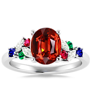 6.17ct Spessartite set in Modern Tri Color Gems & Diamond Ring