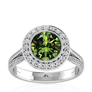 5.12ct Demantoid Garnet set in Luxury Halo Crown Diamond Ring
