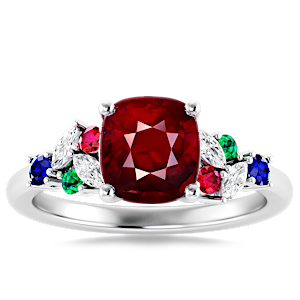 5.09ct Mozambique Ruby set in Modern Tri Color Gems & Diamond Ring