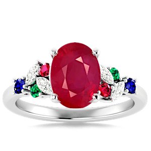 1.43ct Mozambique Ruby set in Modern Tri Color Gems & Diamond Ring
