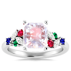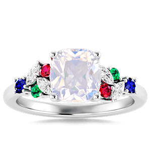 1.95ct Rainbow Moonstone set in Modern Tri Color Gems & Diamond Ring