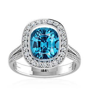 1.08ct Cuprian Tourmaline set in Vintage Halo Natural Diamond Ring
