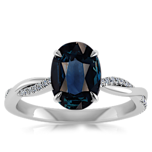 2.71ct Blue Sapphire set in Minimal Entangled Natural Diamond Ring