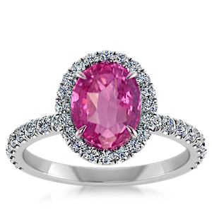 3.00ct Pink Sapphire set in Luxe Halo Natural Diamond Ring