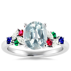 2.67ct Aquamarine set in Modern Tri Color Gems & Diamond Ring