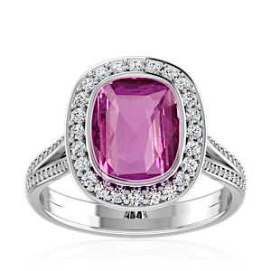 2.55ct Pink Sapphire set in Vintage Halo Natural Diamond Ring