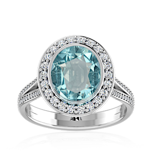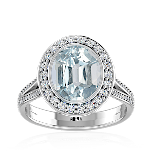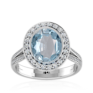 3.50ct Aquamarine set in Minimal Solitaire Natural Diamond Ring