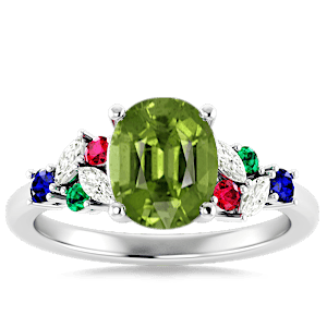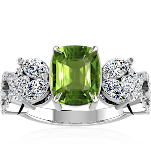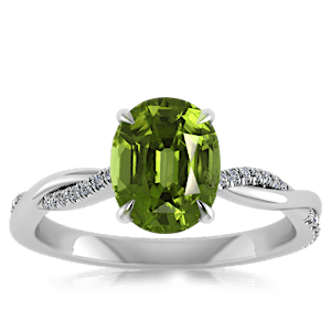 4.57ct Peridot set in Minimal Entangled Natural Diamond Ring