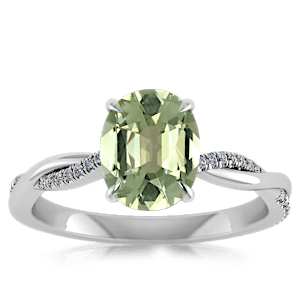 4.09ct Green Tourmaline set in Minimal Entangled Natural Diamond Ring