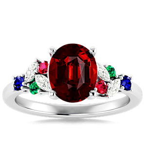 6.40ct Spessartite set in Modern Tri Color Gems & Diamond Ring